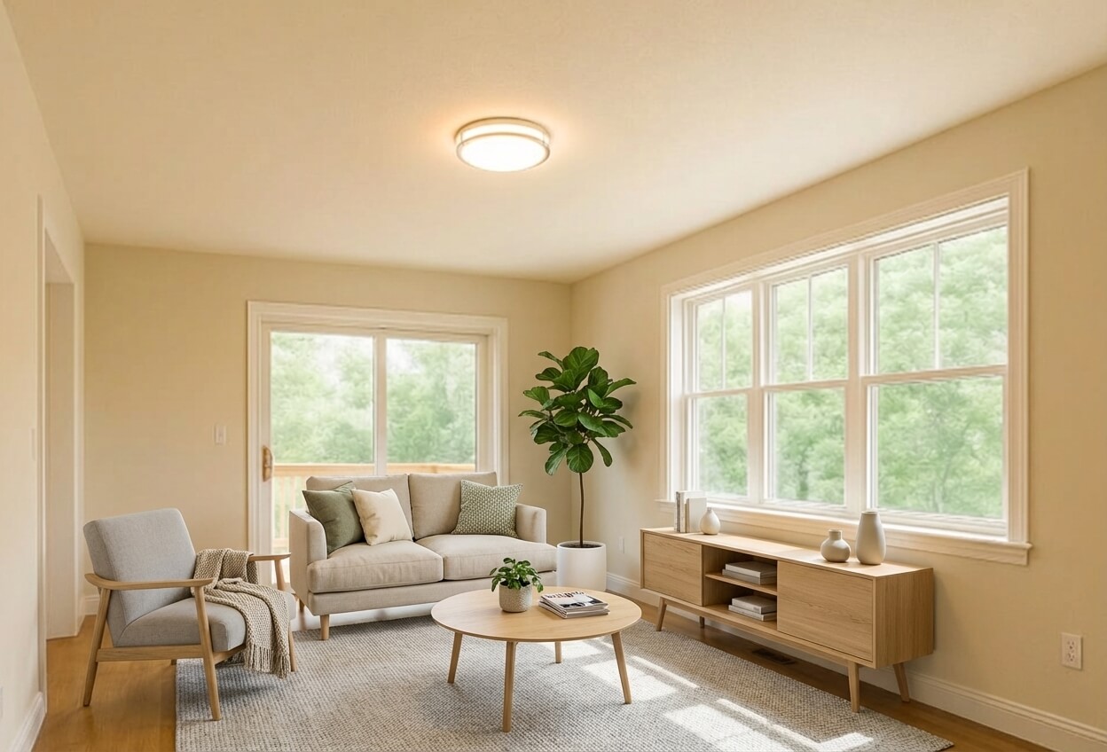 - 広角レンズを使用して部屋を広く見せる