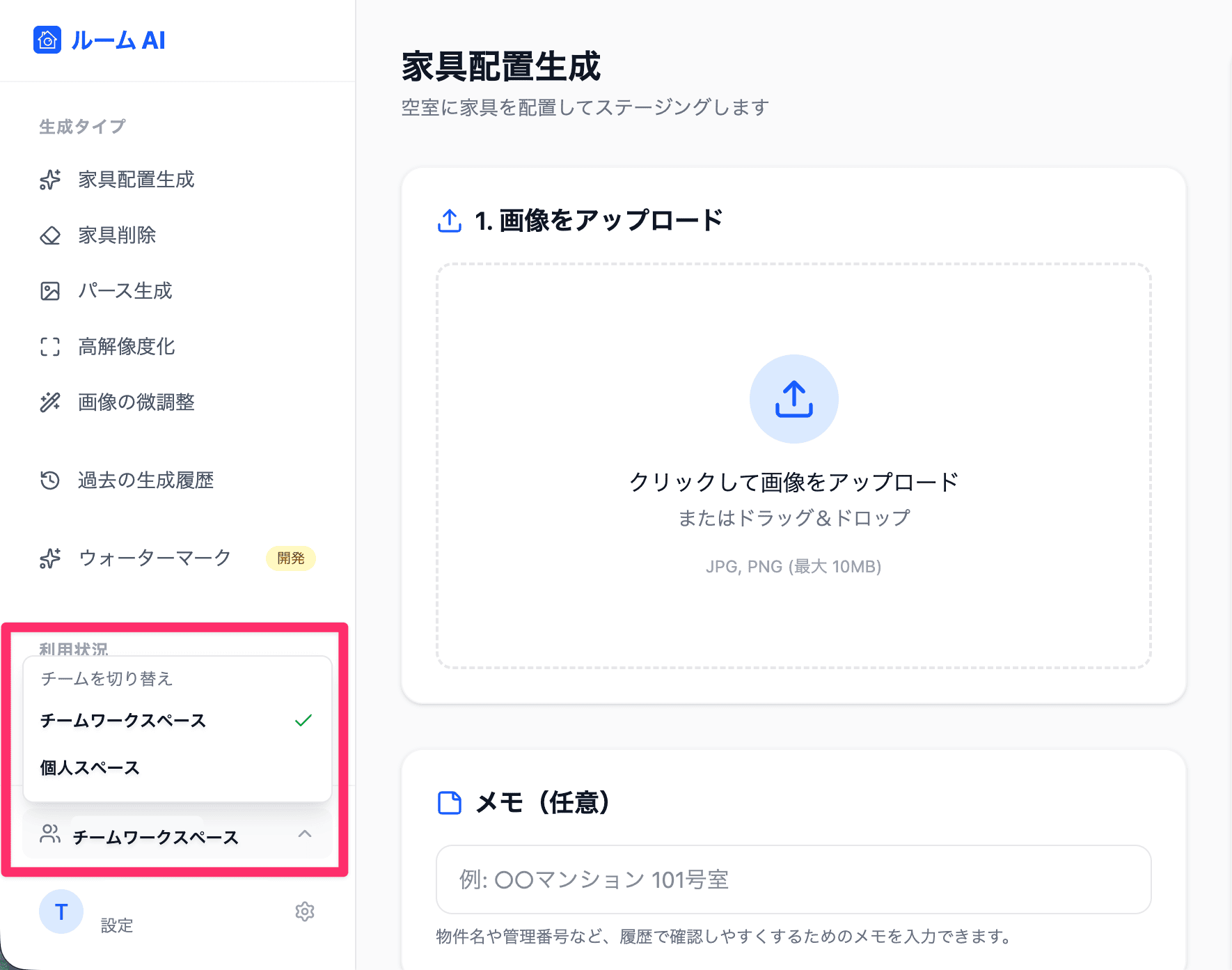 - ルームAIのダッシュボードにログインします。